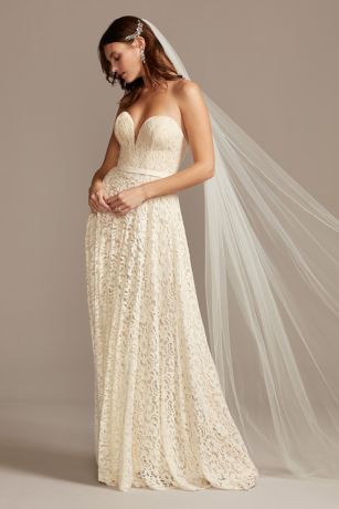 Sweetheart Plunge Lace Wedding Dress With Sash David S Bridal